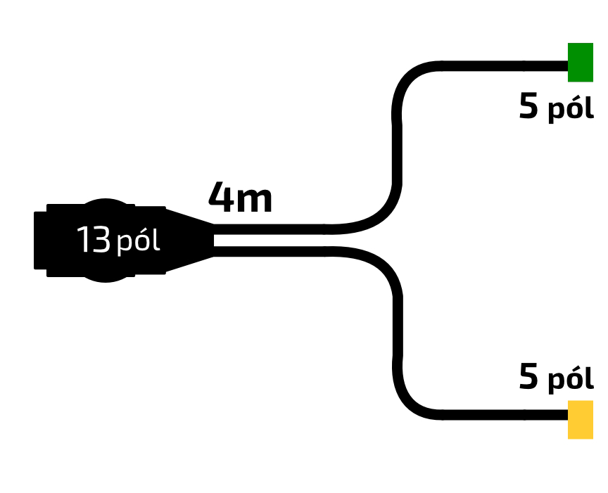 O připojení kabeláže ke svítilnám se postarají špičkově zpracované bajonety s krytím IP67. K připojení kabeláže do zásuvky tažného automobilu pak poslouží kvalitní třináctipinová zástrčka. Tato varianta kabeláže je kompatibilní s přívěsy VAPP Praktik a VAPP ECO.