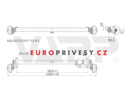 - Náprava AL-KO Compact B 1200-6 (1350 kg) a=1850 mm, c=2300 mm, 5°, 2051, 112x5