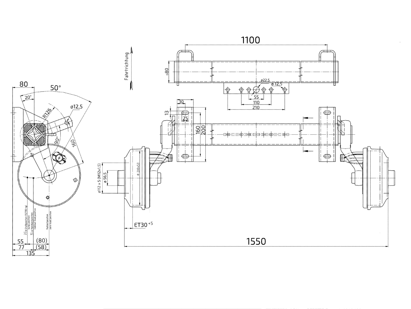- Náprava BPW CB 1505 (1500kg), a=1100mm, c=1550mm