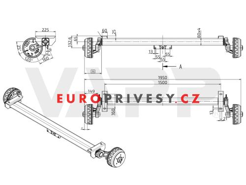 - Náprava KNOTT VGB 13 (1350 kg) b=1500 mm, c=1950 mm, 200x50, 112x5