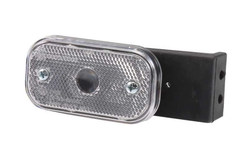Přední obrysová svítilna AJ.BA s bočním držákem. Držák je zhotoven z houževnaté ohebné gumy a opatřen otvory pro dva šrouby M6 v rozteči 15 mm. Do svítilny se osazuje sufit žárovka typu C5W. Žárovka není součástí balení, je nutné objednat vzlášť.
