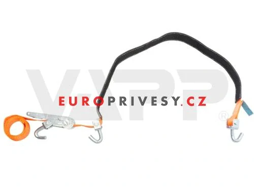 Upínací souprava pro přepravu automobilů. Ideální pro použití na přívěsech a odtahovkách s perforovanou ložnou plochou. Použití tří háků umožňuje pevné a bezpečné uchycení přes kolo převáženého automobilu.