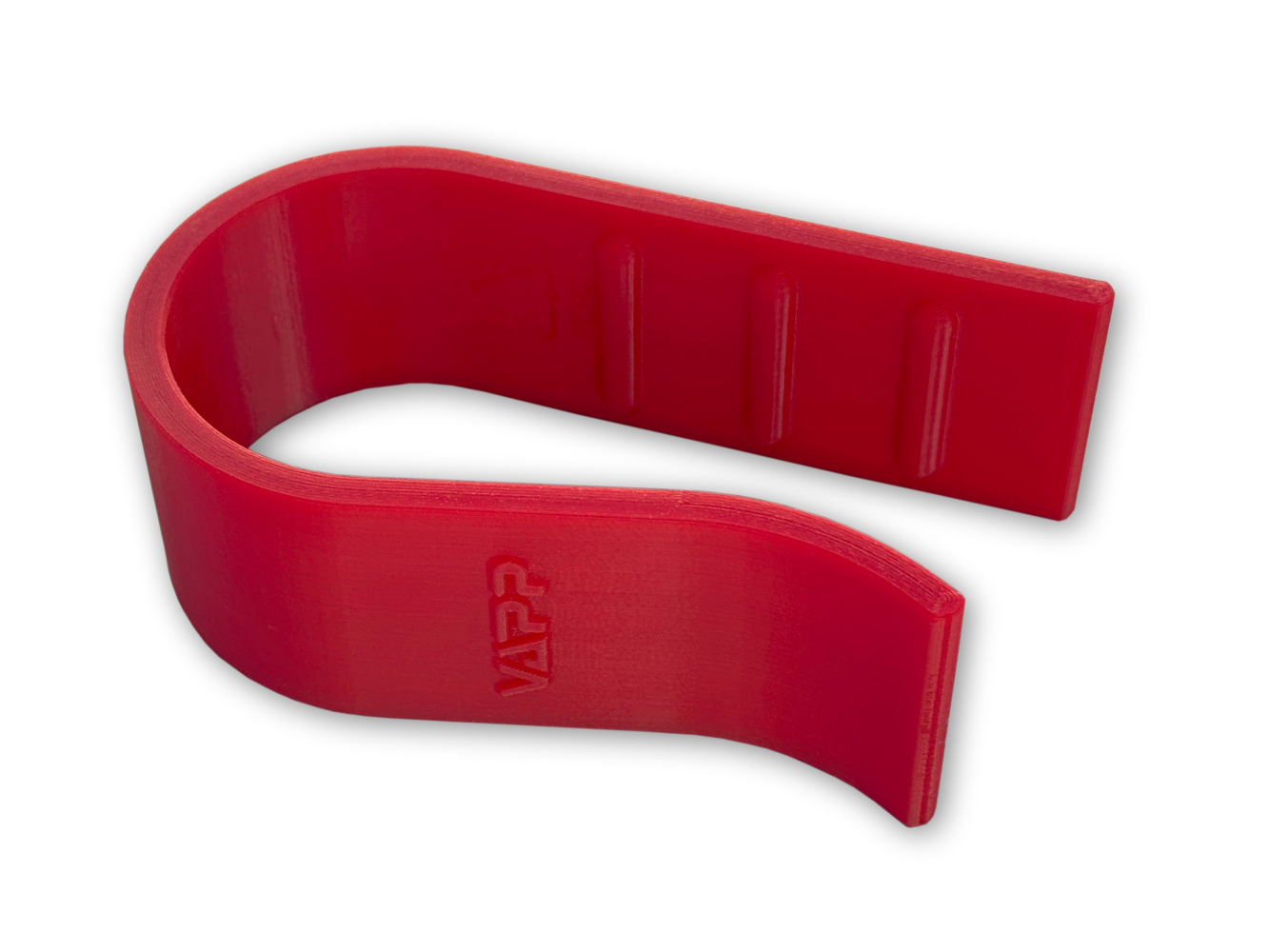 - Výstupky po obou na vnitřních stranách klipu jsou dostatečně vysoké, aby se vmáčkly do boku pásu a dobře držely klip na svém místě. Zároveň jsou oblé ze všech stran, aby při nasazování a sundavání nevytrhávaly vlákna pásu a nepoškozovaly okraje.